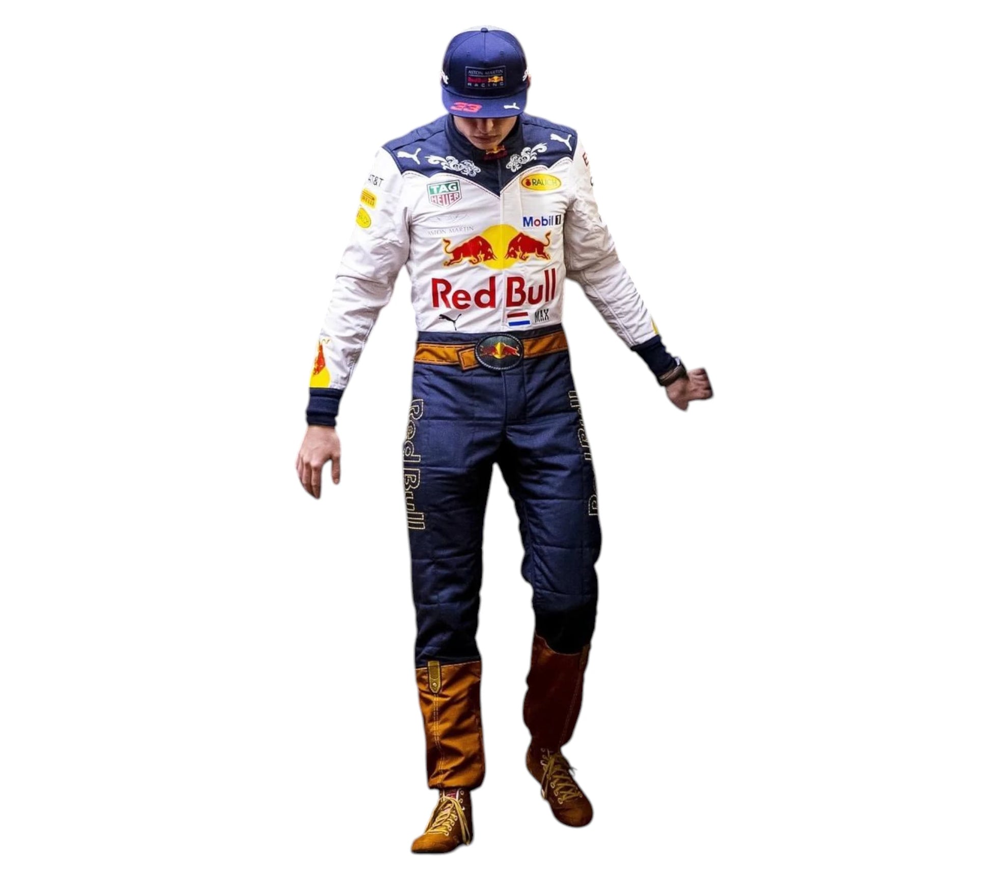 Claim this exclusive 2018 Red Bull limited-edition suit, a striking collaboration that reflects Max Verstappen's innovative approach to motorsport fashion and personal branding. Engineered with the precision and durability standards of professional racing while incorporating distinctive design elements that challenge conventional race wear aesthetics. This rare piece exemplifies Red Bull's willingness to experiment creatively without compromising technical integrity, making it an indispensable addition for collectors who appreciate groundbreaking motorsport memorabilia and Verstappen's cultural significance within Formula 1.
